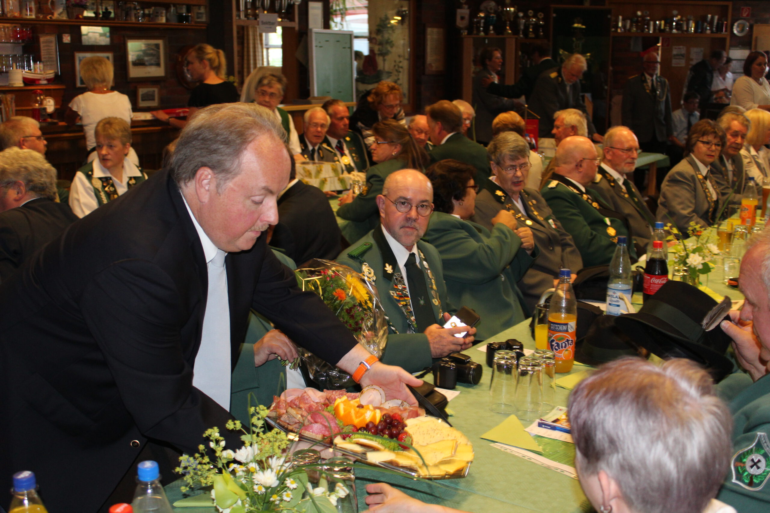 Eine Plakette im Schnabel des Papageien, des Wahrzeichens des Vereins, beweist das Alter des Auricher Schützenvereins, sagte Burkhard Siepermann am Freitagabend zur Eröffnung des Festwochenendes. Die historische Bedeutung machte auch Aurichs Bürgermeister Heinz-Werner Windhorst in seiner Ansprache noch einmal deutlich: „Die Stadt Aurich ist nur 175 Jahre älter als der Schützenverein“, sagte er bei der Feier am Freitagabend.