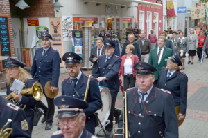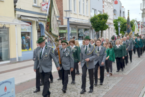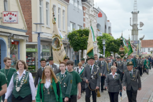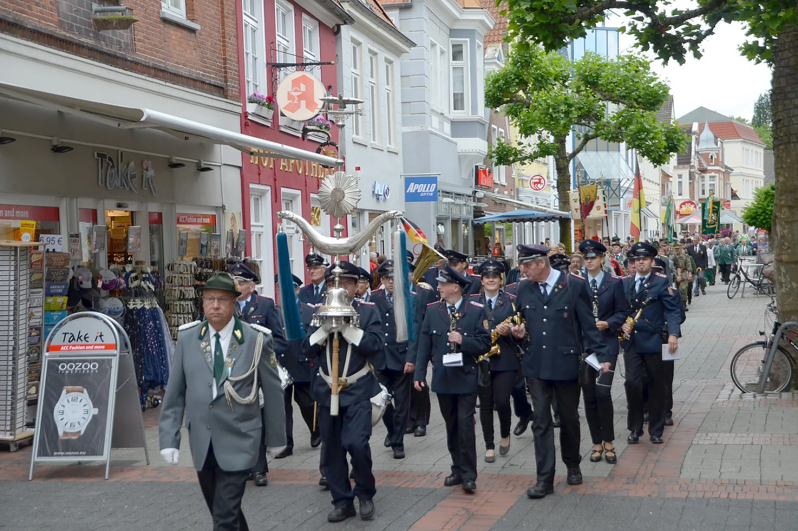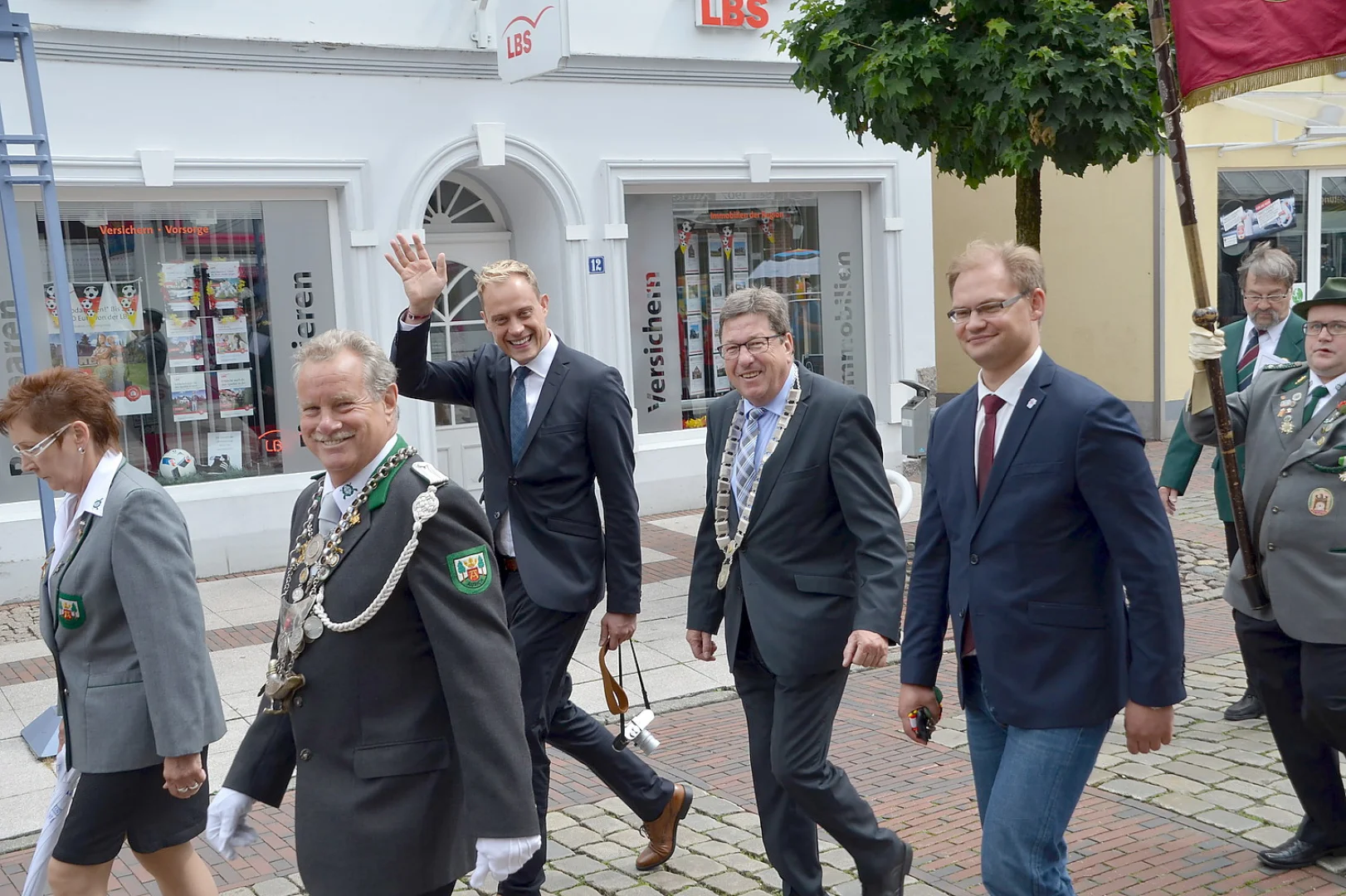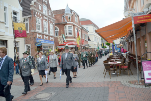 Aurich. Mit Standarten, Pauken und Trompeten: Gleich zweimal zogen die Auricher Schützen am Wochenende durch die Innenstadt. Sie feierten so den 400. Geburtstag des Auricher Schützenvereins (ASV). Am Sonnabend wurden dazu die Politiker des Rates morgens um zehn Uhr abgeholt, und am Sonntag wurde am Nachmittag mit dem zweiten Umzug das Kreisschützenfest eingeläutet.