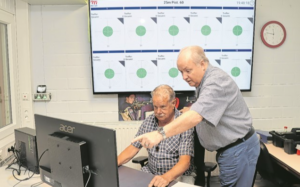 „Der Saal hat eine deutliche Auffrischung erfahren“, sind sich der 1. Vorsitzende, Stefan Dunkmann und sein Stellvertreter, Siegfried Janssen, einig. Besonders zufrieden sind die beiden Vorsitzenden mit dem Umbau des Großkaliber-Schießstandes, der einmalig im Nordwesten ist. Hier hat der Schützenverein in zehn hochmoderne elektronische Schießanlagen investiert.